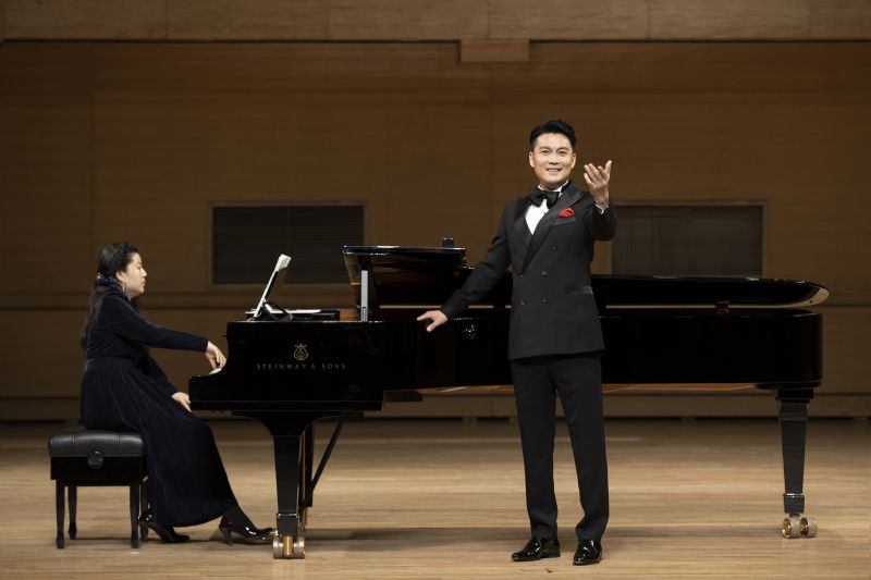 青年教师张大伟音色深情宽厚、舒缓悠长,带给观众美的艺术享受。古诗词艺术歌曲《钗头凤》深情而凄美,催人泪下;《青玉案·元夕》含蓄婉转,余味无穷;哈萨克族民歌《手挽手》激情欢乐,歌颂了美好的爱情与快乐的新生活;歌曲《我为祖国献石油》把石油工人气壮山河的豪迈气概表达得淋漓尽。张大伟与弦乐四重奏张喆渊、简上杰、魏思玄、宋彦孜合作演绎的艺术歌曲《怀念曲》,表达了对远方恋人的相思与怀念之情。特邀手风琴专业青年教师曹野与张大伟共同演绎的歌曲《小路》,旋律优美深情,给人一种向往美好、战胜困难的勇气;歌剧《沂蒙山》选段《再看一眼亲人》表达了无奈不舍、坚毅悲壮的复杂情感;歌剧《党的女儿》选段《天大的重任我来挑》再现了七叔公铁肩担道义的英雄形象,展现了共产党人奋勇担当的革命精神。