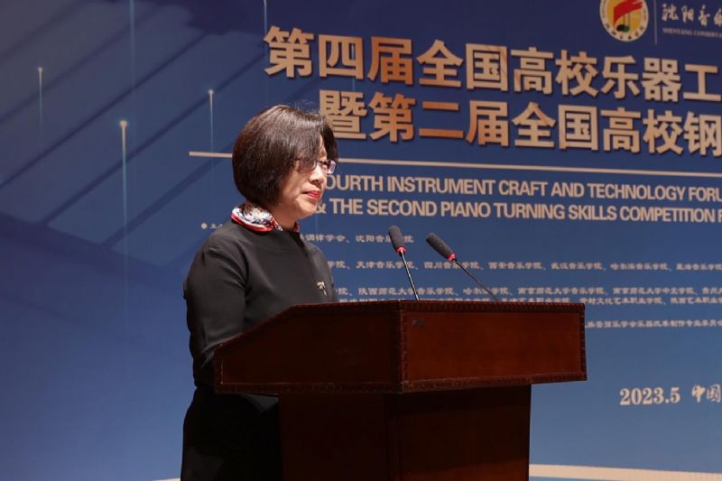 开幕式上,冯志莲代表学院致辞,向参加本次论坛和竞赛的专家、学者和比赛选手表示热烈欢迎。她指出,在80余年的办学历程中,我院为党和国家培养了数以万计的艺术人才,创作了大量极富社会影响力的音乐作品。作为在全国音乐院校中建设最早的专业,我院乐器工艺专业在多年发展中积累了一定的专业优势。在国家新文科建设和高中等教育供给侧结构性改革的大背景下,我院科学规划学科专业布局,形成了以“教学—科研—实践”有机结合、专业教育与技能教育占比科学、人才培养层次设计合理的教育教学改革创新体系,同时积极开展校际合作、校企合作与专业实践基地建设,建立了多个教学实践基地,并且依托辽宁乐器产业的地域优势组建了辽宁省乐器产业校企联盟,大力推进产教融合,推进学科建设创新发展。冯志莲表示,希望通过本次论坛和竞赛进一步加强各兄弟院校的合作交流,整合并发挥全国高校的专业优势和专家优势,集思广益、开拓思路,在音乐科技专业与学科建设方面取得更多成果。