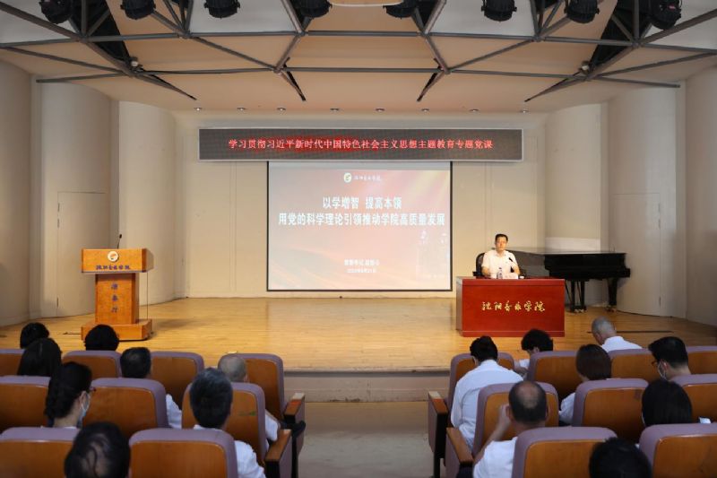 为深入开展学习贯彻习近平新时代中国特色社会主义思想主题教育,进一步巩固拓展主题教育阶段性成果,6月21日,学院党委书记、主题教育领导小组组长赵恒心作题为《以学增智、提高本领,用党的科学理论引领推动学院高质量发展》的专题党课。学院领导班子成员,全体处级领导干部,各教学单位和后勤基建处党总支下设党支部书记,各院系专职组织员、专职党务工作人员和辅导员300余人参加党课。党课由学院纪委书记、监察专员、主题教育领导小组副组长闫玉娇主持。