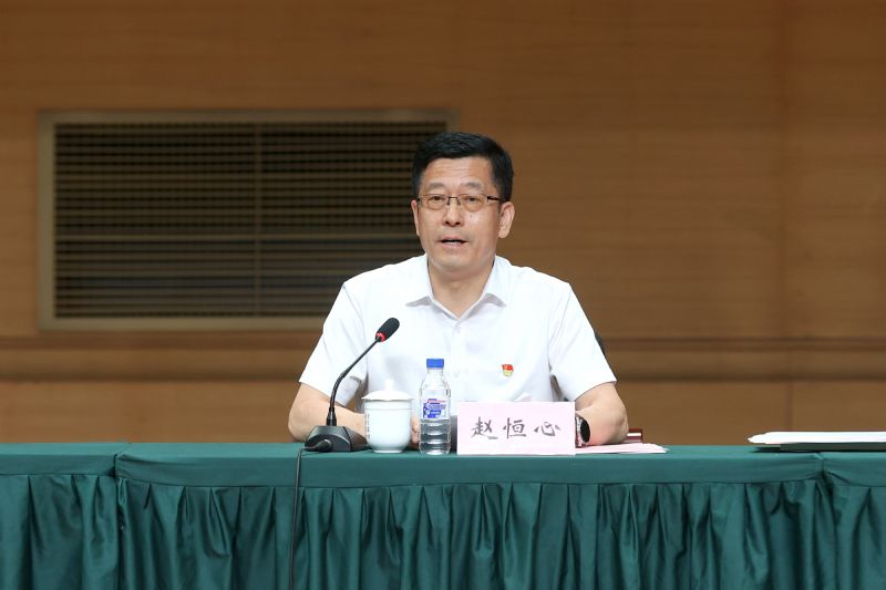 赵恒心代表学院党委讲话。他从“强抓理论学习、注重调查研究、推进问题检视整改、推动高质量发展”四个方面认真总结了学院主题教育进展情况及取得的成效,深刻分析了主题教育中存在的问题和差距,对下一步重点工作进行部署并提出具体要求。一是进一步强化理论学习、提升本领,在以学铸魂上下功夫。要原原本本学,坚持读原著学原文悟原理,做到融会贯通,把握核心要义;要联系实际学,开展符合干部和师生党员特点、形式多样的理论学习,增强针对性有效性;要知行合一学,弘扬马克思主义学风,讲好专题党课,要带着目的学、带着问题学,把学习成效体现到推动“双一流”建设和学院高质量发展能力上。二是突出调查研究“问题、目标、效果”三导向,在以学增智上下功夫。要强化问题意识和责任意识,准确了解师生的所思所想、所需所盼,抓紧研究如何解决问题,拿出破解难题的实招硬招,形成高质量调研报告,牢固树立“研以致用”理念,努力将调研成果转化为推动发展的思路办法和具体举措,使调查研究的过程成为理论学习向实践运用转化的过程,成为解决问题、推动工作的过程。三是敢于直面问题、做实检视整改,在以学正风上下功夫。要坚持刀刃向内,找准突出问题,进行覆盖式检视整改;要深入开展党性分析,对照“讲诚信、懂规矩、守纪律”重要要求,检查剖析,找准症结;要着力抓好整改整治,做好破难题促发展、办实事解民忧各项工作,坚持以制度化推进常态化,对主题教育中的好经验好做法,及时以制度形式固定下来,做好完善机制、建章立制等工作,巩固整改整治成效。四是加强内涵建设、勇于攻坚克难,在以学促干上下功夫。要把主题教育同中心工作结合起来,做到两手抓、两促进,进一步提升教育教学质量,增强核心竞争力,做好育才用才留才引才工作,加强师德师风建设,打造“大思政”金课,推进课程思政全覆盖,增强服务创新能力,持续打造“红色文艺轻骑兵”服务社会品牌,全力推进历史遗留问题解决,抓实“我为师生办实事”活动,推动民生项目抓紧完成,提升师生获得感幸福感安全感。