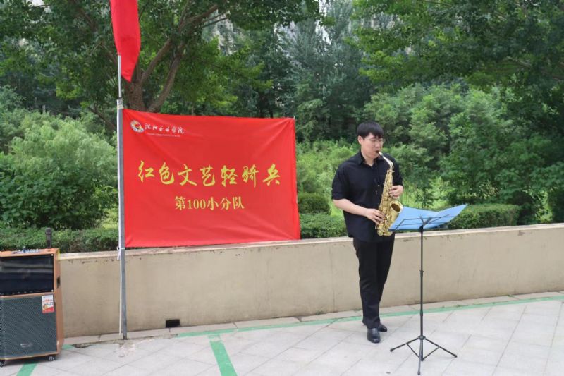 为庆祝中国共产党成立102周年,推动主题教育走深走实,6月27日,由我院继续教育学院、社会教育中心党总支党员代表、入党积极分子及“一带十”活动小组教师代表组成的“红色文艺轻骑兵”第100小分队,走进金地长青湾社区,开展文艺演出。