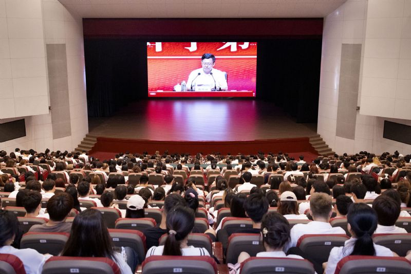 学院领导、各职能、教辅部门负责人、各教学单位主任(院长)、党组织书记、副书记和师生代表在三好校区主会场参加“开学第一课”