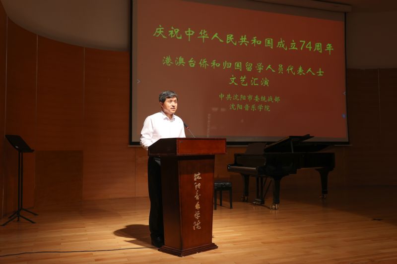 为深入学习贯彻党的二十大精神,进一步推动港澳台同胞、海外侨胞、归侨侨眷和归国留学人员代表人士深入参与“家·在沈阳之看沈阳、爱沈阳、做贡献”活动,9月20日由市委统战部主办、我院承办的“感知沈阳热爱家乡暨庆祝中华人民共和国成立74周年文艺汇演”在三好校区室内乐演奏厅举行。市委统战部副部长、市侨办主任李国栋,民革沈阳市委会专职副主委杨耀志,我院副院长冯志莲(主持行政工作),党委委员、宣传部部长兼统战部部长赵桂君,以及各区县(市)委统战部分管港澳台侨统战工作的副部长观看演出。