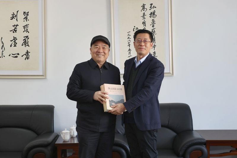 报告会前,赵恒心会见了王建领,双方就传承红色基因、弘扬民族音乐文化等进行了交流探讨。王建领向学院捐赠了他编著的《陕北民歌300首:找回祖先的声音》。赵恒心代表学院接受捐赠,并向王建领颁发了捐赠证书。