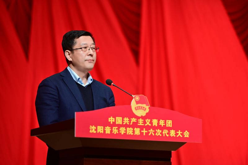 赵恒心指出,学院党委高度重视共青团工作,将共青团工作纳入学院党的建设和思想政治工作总体布局,充分发挥党建带团建的引领作用,把青年凝聚在党的旗帜下,推动学院共青团事业不断开创新局面。他对学院各级团组织近年来在思想引领、改革创新、服务青年、青春建功等各领域工作中取得的突破性成绩,揽获的诸多荣誉给予充分肯定,并对全院团员青年、团学干部和团组织提出三点希望:一是希望广大团员青年坚定不移听党话、跟党走,以“青春之姿”践行“强国有我”的铮铮誓言。广大团员青年要自觉把爱国与爱党、爱社会主义统一起来,把个人理想融入党和国家事业之中,弘扬鲁艺精神,发挥专业优势,苦练过硬本领,牢固树立以人民为中心的价值导向,弘扬艺术报国的理想追求,努力创作出无愧于时代的优秀作品,走出一条新时代沈音学子服务人民、服务辽宁之路,不辜负鲁艺传人这一光荣称号。二是希望共青团干部发扬优良传统,认真履职尽责,以“清澈和纯粹”涵养新时代团干部精气神。各级团学干部要珍惜为党做青年工作的宝贵机会,勇于担苦、担难、担重、担险,从学院青年特质出发谋划工作,努力让思想引领“新”起来、组织动员“燃”起来、文化感召“潮”起来、服务能力“强”起来,团结带领全院团员青年以强国复兴有我的使命担当,再创沈音新的辉煌。三是希望各级共青团组织牢记党的奋斗主题就是团的行动方向,以党的光辉旗帜指引青年奋勇拼搏。各级团组织要立足“政治学校”根本定位,不断夯实青年听党话、跟党走的思想根基;围绕“先锋力量”内在要求,自觉在学院高质量发展重点任务中找准结合点、切入点、着力点;履行“桥梁纽带”职责作用,千方百计为同学办实事、解难事;锚定“先进组织”建设目标,全面推进深化改革,推进从严治团。