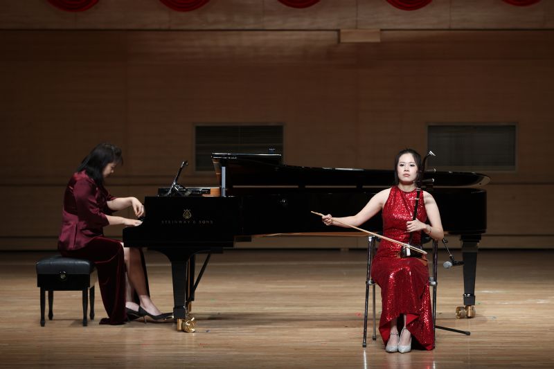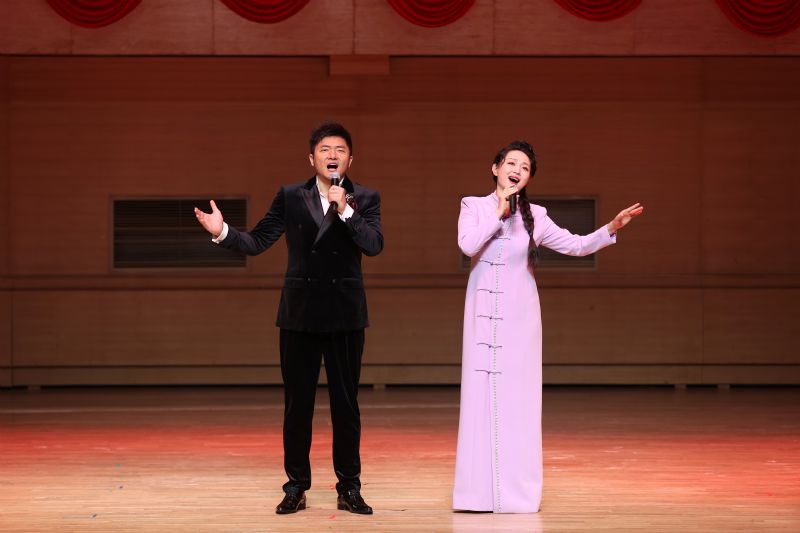 作为本场音乐会的东道主,我院的同学们先后表演了男声独唱《那就是我》《嘉陵江上》、重唱《映山红》《南泥湾》、二胡独奏《阳光照耀着塔什库尔干》、单簧管独奏《牧马之歌》、钢琴独奏《茉莉花幻想曲》、电子管风琴独奏《黄河》以及舞蹈《渡生》《盼归》、歌剧《伤逝》等多部作品。同学们对音乐内容的深刻把握,对人物情感的细腻演绎,赢得现场听众的阵阵掌声。最后,我院青年教师刘航、李优演唱了由党委书记赵恒心作词、教师吕威作曲的歌曲《血脉》,表达了新时代鲁艺传人坚守文艺报国理想、勇担“为时代放歌、为人民起舞”职责使命的家国情怀。