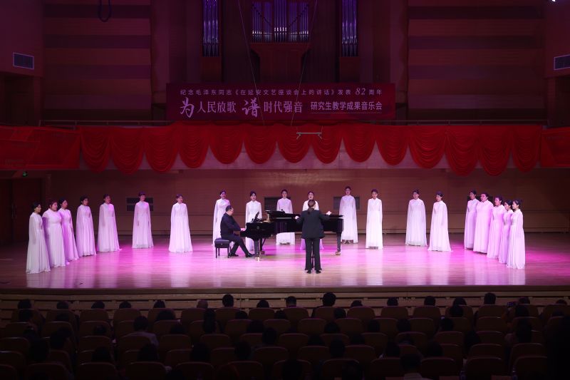 5月23日,“为人民放歌 谱时代强音”——纪念毛泽东同志《在延安文艺座谈会上的讲话》发表82周年研究生教学成果音乐会在我院举行。辽宁省政协副主席、民进辽宁省委会主委姜军,辽宁省政协常委、民进辽宁省委会专职副主委吴军,白俄罗斯国家音乐学院院长叶琳娜·库拉金娜,沈阳市民政局局长、民进沈阳市委会副主委孙海燕,我院党委书记赵恒心,纪委书记、监察专员闫玉娇,副院长庞渤,辽宁大学艺术学院院长安琳,东北大学艺术学院音乐系主任张杨,辽宁师范大学音乐学院副院长侯蕾,沈阳师范大学音乐学院院长赵书一与全省艺术类高校师生共同观看音乐会。