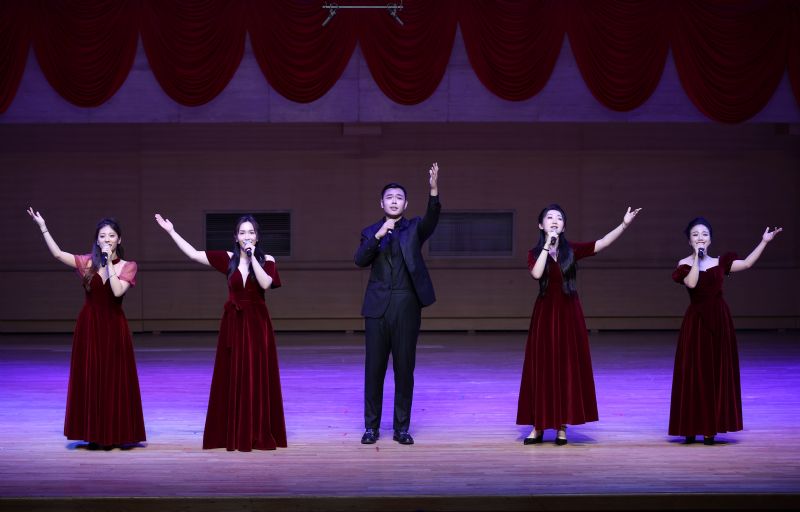 音乐会在沈阳师范大学选送的男女声四重唱《我们的新时代》中拉开帷幕。铿锵有力的歌声唱响了新时代的主旋律,抒发了踊跃投身强国建设、民族复兴的豪情壮志。沈阳师范大学的同学们还带来了铜管五重奏《欢庆》,展现出节日热烈欢腾的场面和人们团结友爱的图景。辽宁师范大学选送的钢琴独奏《努玛阿美》、女声独唱《我爱你中国》,深情表达了新时代青年的爱国主义情怀与使命担当。东北大学选送的声乐独唱《一杯美酒》、钢琴独奏《梅花三弄》,具有浓郁的民族特色,展示了对祖国大好河山的赞美与热爱。辽宁大学选送的女声小合唱《葡萄园夜曲》、古筝重奏《山丹丹开花红艳艳》,圆润饱满的唱腔、精湛娴熟的演奏技巧,将作品的诗意完美地呈现给现场观众。