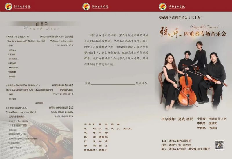 音乐会名称:戛威教学系列音乐会(三十九)——弦乐四重奏专场音乐会
