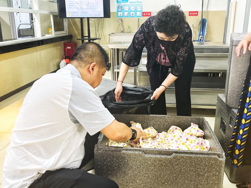 学生处工作人员、宿舍管理人员为留校学生准备爱心礼包