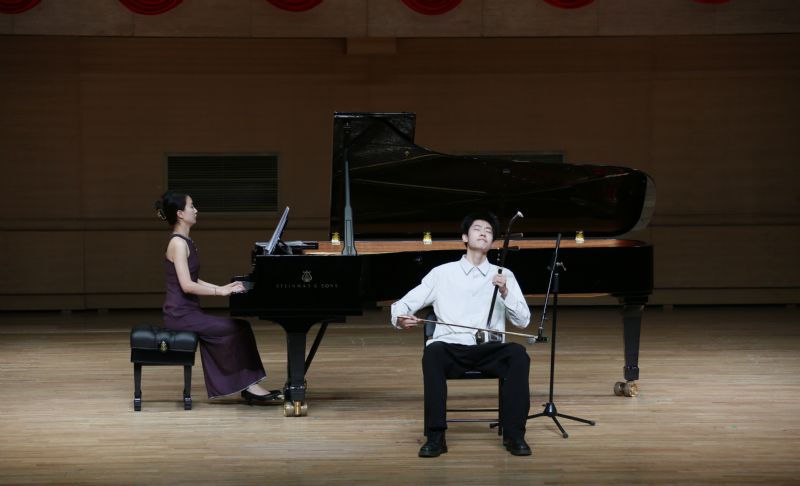 音乐会在二胡独奏《豫乡行》中拉开帷幕。作品充满了浓郁的河南地方韵味,生动表达了河南人民对家乡的赞美、对美好生活的憧憬。《秦腔主题随想曲》节奏鲜明多样,乡土气息浓郁,将西北人民勤劳质朴和豪爽的性格体现得淋漓尽致。钢琴独奏《a小调奏鸣曲——回忆》情绪变化明显,音乐形象鲜明,速度节奏多变,体现出作曲家对浪漫的深刻解读。《升F大调练习曲》(Op.7 No.4)以其活泼谐谑、机灵古怪的音乐色彩,狂烈的节奏,为观众带来美妙的艺术享受。二胡独奏《巾帼》从不同视角展现女性不让须眉的气魄,再现了忠诚、坚强、勇敢征战沙场的巾帼英雄形象。《第五二胡狂想曲》采用蒙古族音乐风格,用动人心弦的音韵、抒展的长调,热情讴歌了祖国的大好河山。钢琴独奏《D大调奏鸣曲》(Hob XVI42)用节奏的变换赋予乐章浓郁的情绪对比,给人以翻飞灵动的听觉效果。《幻想小品集》(Op.12)具有浓郁的浪漫主义风格,展现了作曲家细致优雅、微妙的幻想。《第五奏鸣曲》采用单乐章形式,给观众以空旷、悠远、神秘的感觉。音乐会在充满浓厚异域风情的二胡独奏《丝路拾光》中圆满落下帷幕。