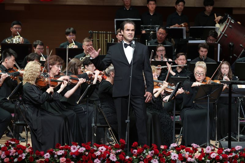 在乐团指挥拉苏洛夫·奥塔别克执棒指挥下,滨海边疆区爱乐乐团太平洋交响乐团与我院北方交响乐团联袂带来俄罗斯著名作曲家格林卡的《鲁斯兰与柳德米拉》序曲与我院杰出校友、著名作曲家刘炽的《我的祖国》。起伏有致的乐曲旋律、激烈炽热的情绪表达,一俄一中两首作品铺展出中俄文化交流的华美乐章。钢琴独奏《伦巴舞曲》充分展示了拉丁音乐和舞蹈的精髓和灵魂,让听众深刻感受到浪漫与热情。男声独唱《莫斯科郊外的晚上》《蓝色永恒》、男女声二重唱《我爱你,中国》都是中俄两国人民耳熟能详的经典歌曲,深情优美的歌声与大气磅礴的交响乐相互交织,汇成了中俄两国文化源远流长的交融之音。芭蕾舞剧《罗密欧与朱丽叶》选段《蒙太古与凯普莱特》与《加雅涅》选段《列津斯基舞曲》,时而热情奔放、清脆嘹亮,时而柔美温婉、细腻轻盈,音乐的力量与情感的力量交相辉映,给人以美的享受、心灵的启迪。
