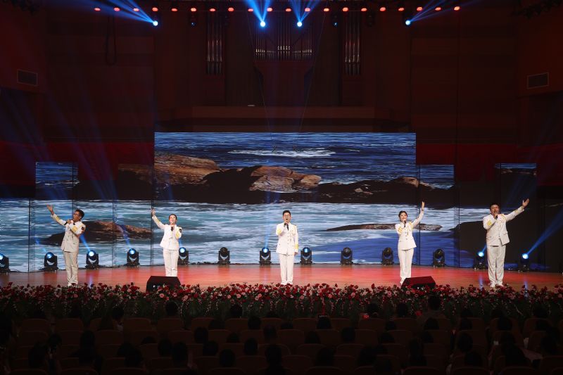 “我们走在大路上,意气风发斗志昂扬……”全体获奖选手合唱《我们走在大路上》,激情澎湃的歌声唱出一代代中华儿女向着实现中华民族伟大复兴的中国梦目标奋勇前进的坚定信念和豪迈气概,也将展演推向高潮。