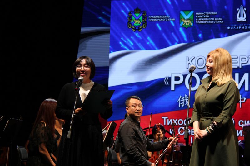 9月6日晚,第二场音乐会在滨海边疆区爱乐乐团音乐厅举行。滨海边疆区政府副主席叶莲娜·尼古拉耶夫娜·博罗尼科娃、滨海边疆区爱乐乐团团长维多利娅·芙拉基米罗夫娜·科切特科娃,中国驻符拉迪沃斯托克总领馆总领事朴扬帆、副总领事王军、副总领事余祖捷和中俄各界友好人士近300人出席音乐会。音乐会前,博罗尼科娃代表滨海边疆区政府致欢迎词,感谢两国艺术家倾情合作,以及为中俄人文交流和艺术合作作出的积极贡献,并为学院颁发了由俄罗斯滨海边疆区州政府签署的荣誉证书和感谢信,感谢学院为两省州文化交流做出的努力。副院长王硕代表学院致辞,祝贺东方经济论坛圆满成功,祝愿中俄两国人民友谊地久天长。