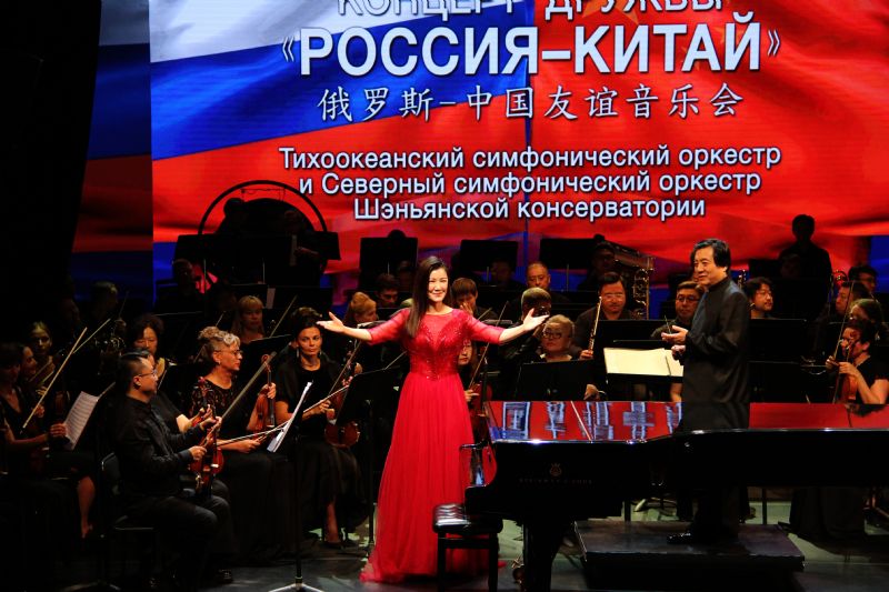 当地时间9月2日晚,代表团抵达符拉迪沃斯托克,并于3日和4日与滨海边疆区爱乐乐团进行了联合排练。9月5日下午,两国艺术家在东方经济论坛主会场舞台进行了首场演出。滨海边疆区政府副主席叶莲娜·尼古拉耶夫娜·博罗尼科娃,滨海边疆区国际合作厅厅长阿列克谢·尤里耶维奇·斯塔里奇科夫,滨海边疆区文化部副部长马克西姆·米哈伊洛维奇·布尔代洛、奥尔加·安娜托利耶夫娜·马克西姆丘克,滨海边疆区爱乐乐团团长维多利娅·芙拉基米罗夫娜·科切特科娃,辽宁省副省长高涛、省政府副秘书长孙伟、省商务厅厅长潘爽、省工业和信息化厅副厅长彭义、省人民政府外事办公室二级巡视员吴世坤及参加第九届东方经济论坛的部分参会代表共同观看了演出。