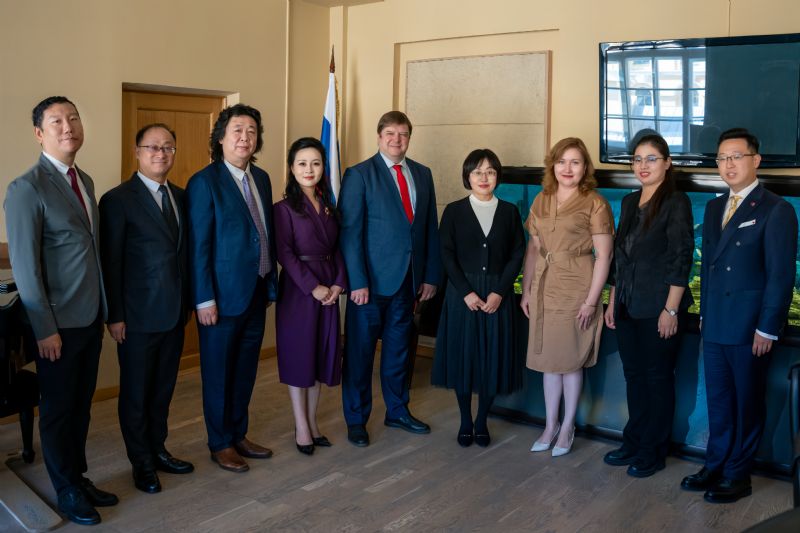 代表团与俄罗斯滨海边疆区政府副主席博罗尼科娃、滨海边疆区爱乐乐团团长科切特科娃,中国驻符拉迪沃斯托克总领馆总领事朴扬帆、副总领事王军、副总领事余祖捷等举行会谈