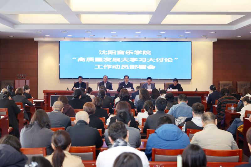 赵恒心在会上讲话。他指出,学院开展“高质量发展大学习大讨论”活动,主要目的是统一思想、抢抓机遇、共谋发展,进一步激发全校党员干部和教职员工干事创业、争先进位的内生动力,切实增强爱校护校荣校的主人翁意识,为擘画学院高质量发展蓝图贡献智慧和力量。他围绕“弄明白为什么要推进学院高质量发展”“想清楚沈音要实现什么样的高质量发展”“规划好怎样实现沈音的高质量发展”三个方面,阐述了活动的重要意义。他强调,实现高质量发展,事关学院人才培养的质量和水平,事关学院在全国高等专业艺术教育格局中的地位和作用,事关学院未来发展的功能和定位。通过开展“大学习大讨论”,倾听全体教职工的呼声和期盼,不断达成共识、强化共识、践行共识、发展共识,汇集推动学院高质量发展的智慧和力量。