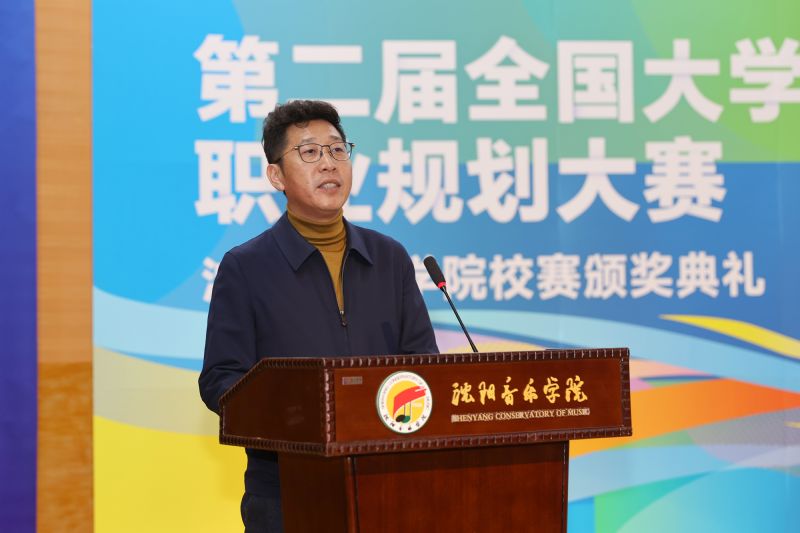 庞渤在颁奖仪式上讲话。他首先对获奖的学生们表示祝贺,对指导教师的辛勤付出表示感谢。他指出,大学生职业规划大赛作为启蒙职业生涯意识、增强探索与规划、提升职业素养与就业能力的重要平台,为同学们提供了一个展示梦想的机会。他希望同学们以此次大赛为契机,认真做好自身职业规划,进一步提高个人的专业能力、求职能力、抗压能力、沟通协作能力和分析解决问题的能力,在未来的学习和发展中积极进取、从容不迫、开拓创新、奋力拼搏,并力争在省赛、国赛中再创佳绩,早日实现自己的职业梦想。