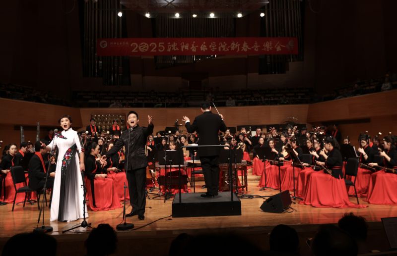 1月3日晚,盛京大剧院音乐厅内华灯璀璨,洋溢着新年的喜庆氛围。在著名青年指挥家、我院民族器乐系副教授孙鹏的指挥下,音乐会在寓意兴旺与美好的民族管弦乐《盛》中拉开了帷幕。庄重与欢庆的旋律在音乐厅内回响,灵动跳跃的音符表达出人们对新的一年繁荣昌盛的美好祝愿。随后乐团演奏的《思念》,以抒情慢板的形式,深情地表达了相思与怀念的情感。古筝协奏曲《定风波》、唢呐与乐队《百鸟朝凤》、民族管弦乐《新金蛇狂舞》,多角度展现了中华民族悠久灿烂的音乐文化。融入山西民歌元素,旋律深邃优美的歌曲《远情》,既充满了对人生沧桑变幻的感慨,又表达了对美好事物的追求。极具东北地域风格特色的民间小调《丢戒指》和东北民歌《看秧歌》,节奏明快、幽默风趣,令人轻松愉悦的旋律表现了东北人民风趣诙谐的性格和丰富多彩的民俗文化,既让人感受到东北地域节日的热闹氛围,也让人在欢笑中感悟生活的温馨与美好。乐团还演奏了近年来创作的民族管弦乐《春华秋实》,借音乐象征从辛勤耕耘到收获满满的历程,寓意着付出与收获、努力与成就的必然联系,激励人们为实现美好的明天而努力奋斗。音乐会特邀中国民族管弦乐学会会长、中国音乐家协会琵琶学会会长、我国民族器乐领域知名专家吴玉霞演出琵琶协奏曲《云想花想》。演奏家通过精湛且丰富的琵琶演奏技法和琵琶独特的音乐表现力,以跌宕起伏的节奏道出“春风拂槛露华浓”的意蕴,描绘出深切的情思和对美好事物的向往,为精彩的音乐会再添亮色。