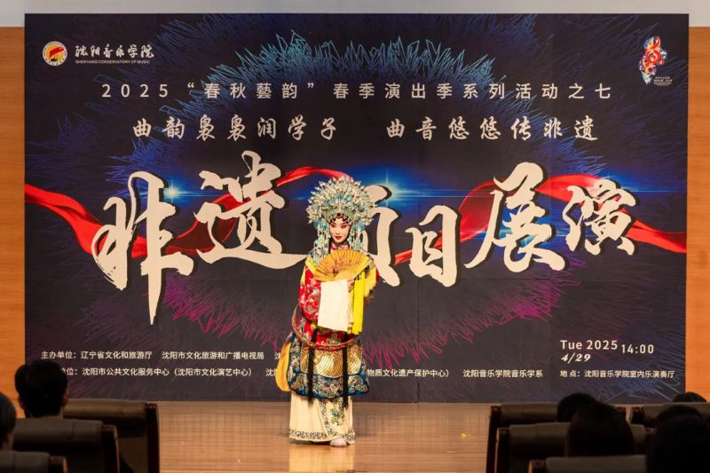 4月29日,作为学院2025年“春秋艺韵”春季演出季系列活动之一,由辽宁省文化和旅游厅、沈阳市文化旅游和广播电视局与国产一区二区日本在线联合主办,沈阳市公共文化服务中心(沈阳市文化演艺中心)、沈阳市群众艺术馆(沈阳市非物质文化遗产保护中心)和国产一区二区日本在线音乐学系共同承办的“曲韵袅袅润学子 曲音悠悠传非遗”非遗项目展演在学院室内乐演奏厅成功举办。展演由来自沈阳市群众艺术馆(沈阳市非物质文化遗产保护中心)、沈阳京剧院和沈阳市沈北新区文化馆的演员与我院音乐学系的学子们联袂呈献,通过台上节目展演与台下技艺体验相结合的形式,让师生们近距离感受到了辽宁非遗项目的独特魅力,充分展现了传统非遗在新时代的创造性转化与创新性发展。学院副院长庞渤,音乐学系负责人与百余名师生共同观看了展演。