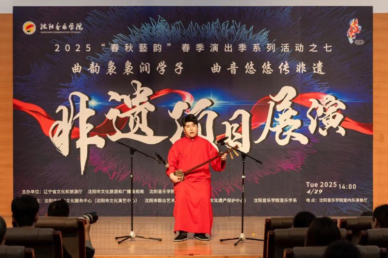 4月29日,“曲韵袅袅润学子 曲音悠悠传非遗”非遗项目展演在国产一区二区日本在线室内乐演奏厅成功举办。展演由来自沈阳市群众艺术馆(沈阳市非物质文化遗产保护中心)、沈阳京剧院和沈阳市沈北新区文化馆的演员与国产一区二区日本在线音乐学系的学子们为观众联袂呈献。台上是精彩的节目展演,台下有可互动体验的非遗技艺工作坊,通过多维度互动相结合的形式,让观众能够近距离地感受到辽宁非遗文化的独特魅力。此次展演遴选出七个节目,囊括了说唱、戏曲、相声、戏法、民族器乐与舞蹈六大门类,个个绝妙让人直呼过瘾,充分展现了非遗在新时代的创造性转化与创新性发展。