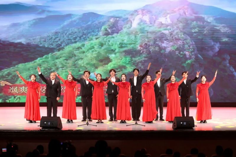 演出在激昂的小合唱《红色文艺轻骑兵之歌》中拉开序幕,表演者们用嘹亮的歌声与饱满的热情,生动再现了学院“红色文艺轻骑兵”小分队深入基层,以艺术服务人民的动人场景。女声独唱《和祖国在一起》,深情的演唱将赤子之心化作音符,诠释个体与祖国休戚与共的深厚情怀。原创舞台剧《穿越时空的对话》,以一场震撼心灵的历史对话来跨越古今、缅怀先烈,感人至深。舞蹈《清风徐来》用女子团扇舞的形式表现清代仕女画中的意境美。舞者摇曳生姿的肢体语汇仿若阵阵清风拂过心间,为观者带来清新与感动。女声独唱《我爱你,中国》,演唱者以其清澈的嗓音和深情的表达,倾诉着中华儿女对祖国的无限赞美之情。弦乐六重奏《游击队之歌•红星歌》,演奏者以精湛且配合默契的演奏技巧,再现游击队员在林间穿梭的矫健的步伐,唤起观众对红色岁月的回忆。