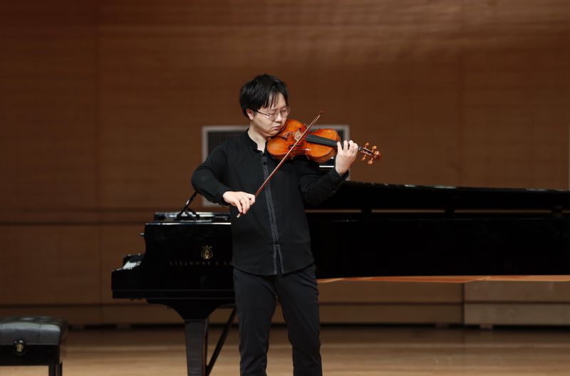 随后的钢琴独奏《降 b 小调第二钢琴奏鸣曲 Op.35 第一乐章》展现出对古典音乐的精准诠释;管弦系何可嘉的小提琴独奏《帕格尼尼随想曲第 24 首》则以高超的演奏技巧征服听众;单簧管独奏《致敬费德曼》以醇厚音色致敬费德曼,又以现代技法续写传奇;圆号独奏《行板》,温暖如歌的旋律将圆号这一铜管乐器的表现维度推向全新高度;金洺羽的长笛独奏《田园风格的行板与小谐谑曲》将长笛音色之美与音乐诗意完美融合,展现出作者对田园风光和美好生活的热爱与向往。