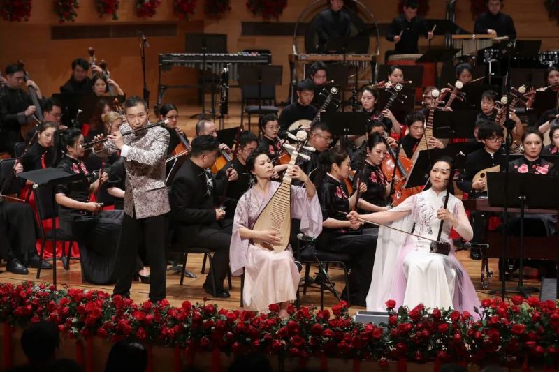 本场音乐会汇集了由我院知名校友、作曲家王云飞创作的十部原创民族管弦乐力作。胡琴表演艺术家宋飞、琵琶演奏家刘刚、古筝演奏家吉炜等十余位民族管弦乐艺术家以多元的艺术语言诠释中华传统文化的深厚底蕴,以澎湃的旋律致敬时代精神,为现场观众呈现了一场兼具艺术高度与思想深度的视听盛宴。音乐会由中国歌剧舞剧院民族乐团、国产一区二区日本在线北方民族乐团、黑龙江省歌剧舞剧院民族乐团联袂演出;当代青年指挥家,我院民族器乐系副教授孙鹏担纲指挥,音乐会由中国歌剧舞剧院民族乐团团长栾冬担任导赏。