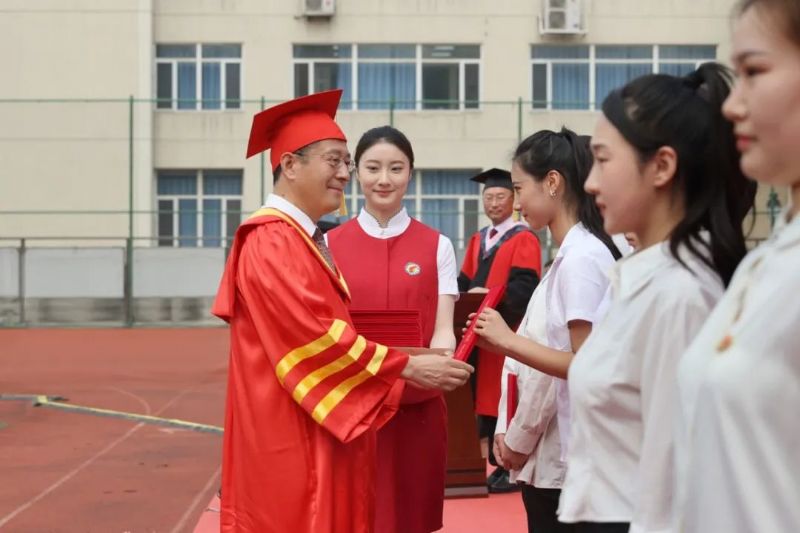 在激昂嘹亮、催人奋进的校歌《我们走在大路上》中,毕业典礼落下帷幕。主席台就坐的领导、老师起立目送全体毕业生有序退场,伴着音乐《启程》,毕业生们难掩泪水与恩师、同窗挥手告别,拥抱鼓励,带着对母校的眷恋、师长的教诲、同窗的友情,踌躇满志地奔赴山海,报效祖国。