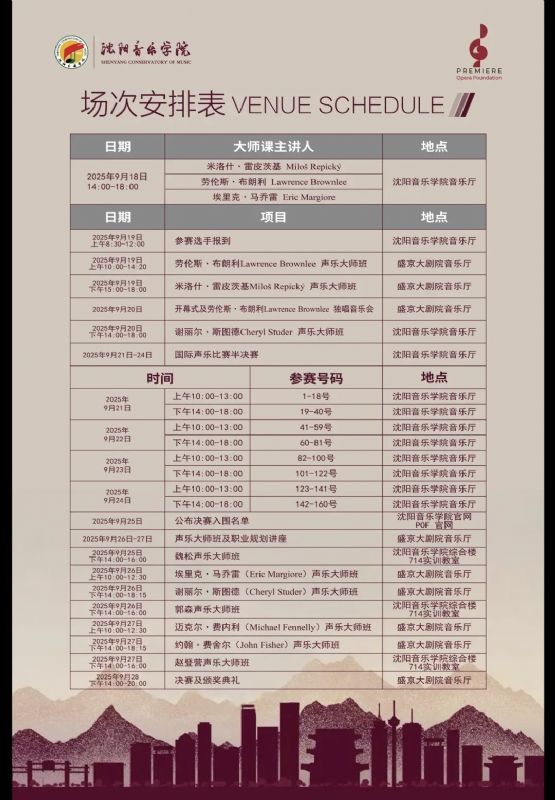 第九届“首映歌剧”国际声乐大赛暨首届亚洲选拔赛场次安排表