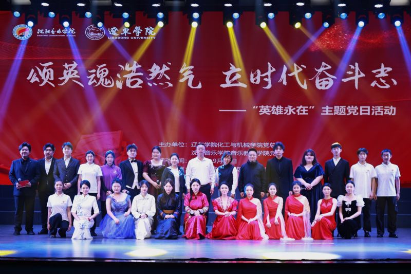 当晚,音乐教育学院“红色文艺轻骑兵”小分队受邀走进辽东学院,与化工与机械学院500余名师生携手,共同开展“英雄永在”主题党日活动。在活动中,师生们通过合唱、独奏、重奏等多元艺术形式倾情演绎了多部经典红色作品,用艺术语言礼赞英雄、讴歌信仰,现场掌声如潮。尽管学科背景迥异,但两院师生在立德树人根本任务和服务国家的使命担当中产生了强烈共鸣。