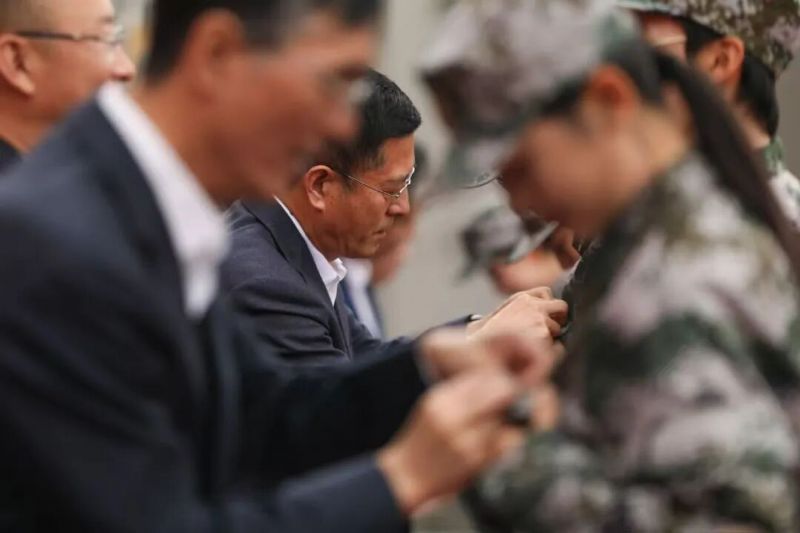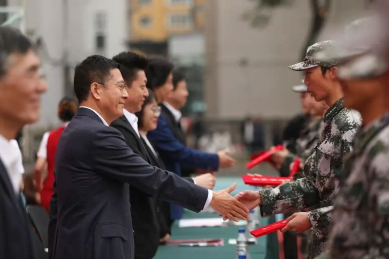 在全体同学的掌声、欢呼声和祝福声中,教官们整齐有序地归队,踏上保家卫国的光荣征程。典礼在《我们走在大路上》激昂豪迈的歌声中结束。